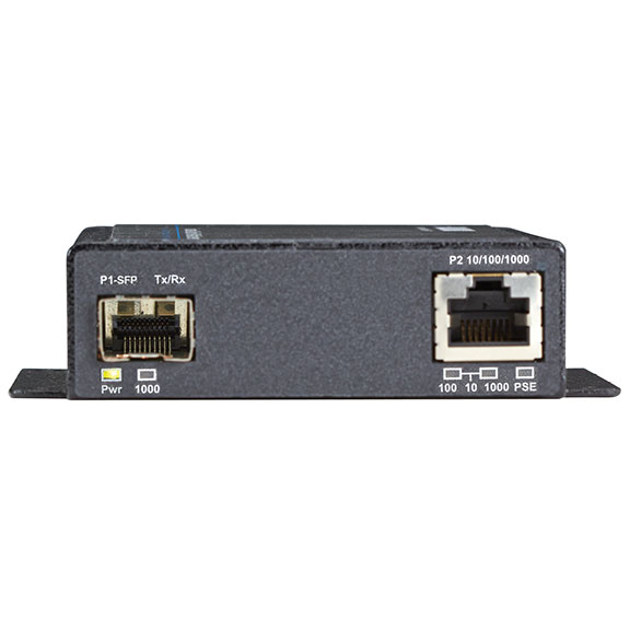 PoE Industrial Gigabit Ethernet Media Converter, SFP. Industrial strength to power to remote PoE devices.