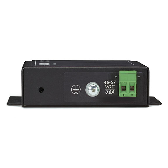 The converter operates in extreme temperatures of -40° to +65° C and is ideal for powering PDs such as security cameras, wireless access points, security cameras, building access devices, and automation equipment in harsh environments. It is especially useful at powering devices in hard-to-reach locations with limited access to AC power outlets, such as ceilings, closets, even the factory floor. The cost of running electrical power to each device is eliminated by sending power over the Ethernet cable.