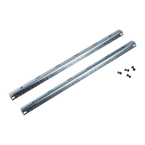 Rack angles for use with WMD12-2425-PQU 12U Double-Hinged Wallmount Cabinet. Features 10-32 Tapped holes. Used for mounting 19-in. rack equipment. Universally spaced and marked by RU.