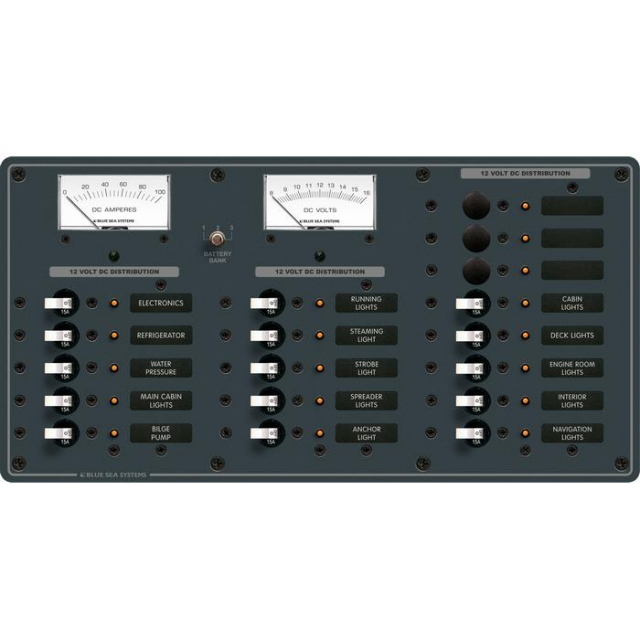 Blue Sea Systems 8378-BSS Panel DC, 18 Position with Ammeter