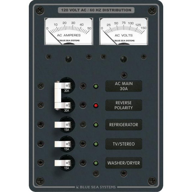 Blue Sea Systems 8409-BSS Panel AC Main and 3 Positions with Ammeter