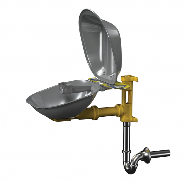Bradley, S19224DCPTZ, Halo Wall-Mount Eyewash, Stainless Steel Bowl and Hinged Dust Cover and P-Trap, European and Australian