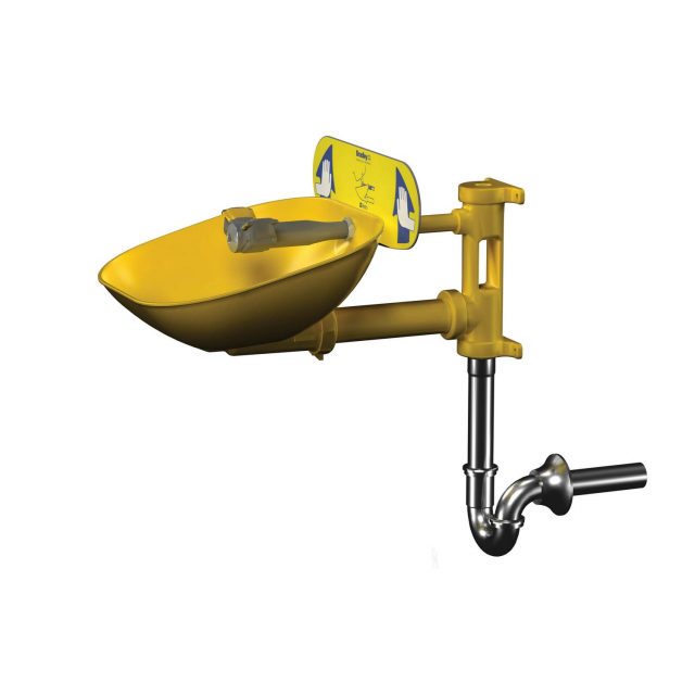 Bradley, S19224PTZ, Halo Wall-Mount Eyewash, Plastic Bowl, With Tailpiece and P-Trap, European and Australian