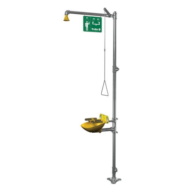 Bradley, S19314BFPBZS, Halo Combination Drench Shower and Eye-Face Wash, Barrier-Free, Plastic Bowl and Showerhead, SS Piping, European and Australian