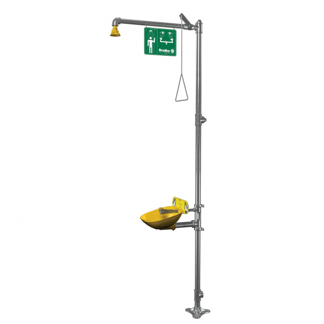 Bradley, S19314EWZS, Halo Combination Drench Shower and Eyewash, Plastic Bowl and Showerhead, SS Piping, European and Australian
