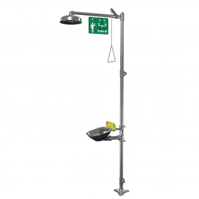 Bradley, S19314FZS, Halo Combination Drench Shower and Eyewash, Plastic Showerhead, Stainless Bowl, SS Piping, European and Australian