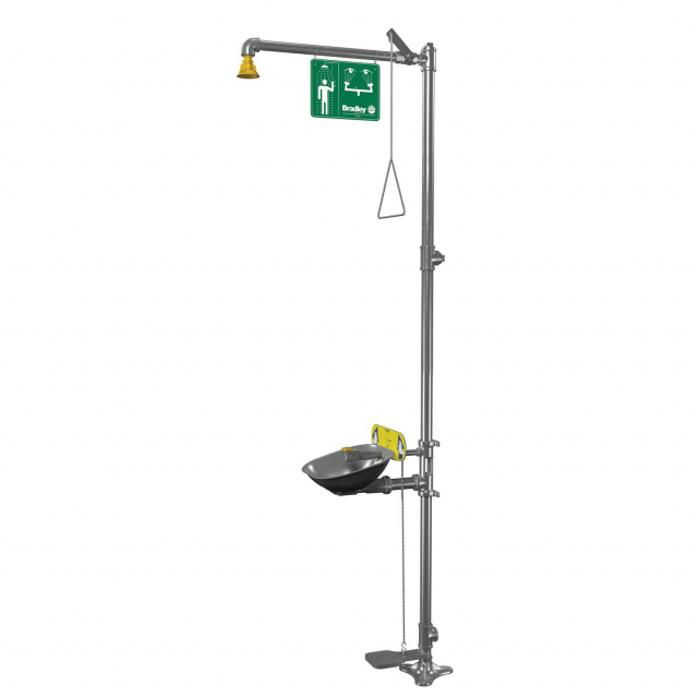 Bradley, S19314LLZS, Halo Combination Drench Shower and Eyewash, Stainless Steel Bowl, Hand/Foot Operated, SS Piping