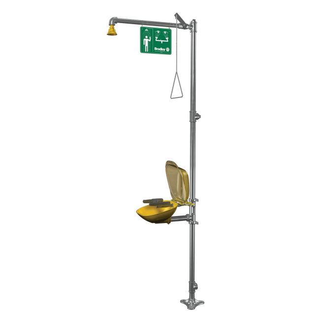 Bradley, S19314PDCFWZS, Halo Combination Drench Shower and Eye-Face Wash, Plastic Bowl, Showerhead, and Dust Cover, SS Piping, European and Australian