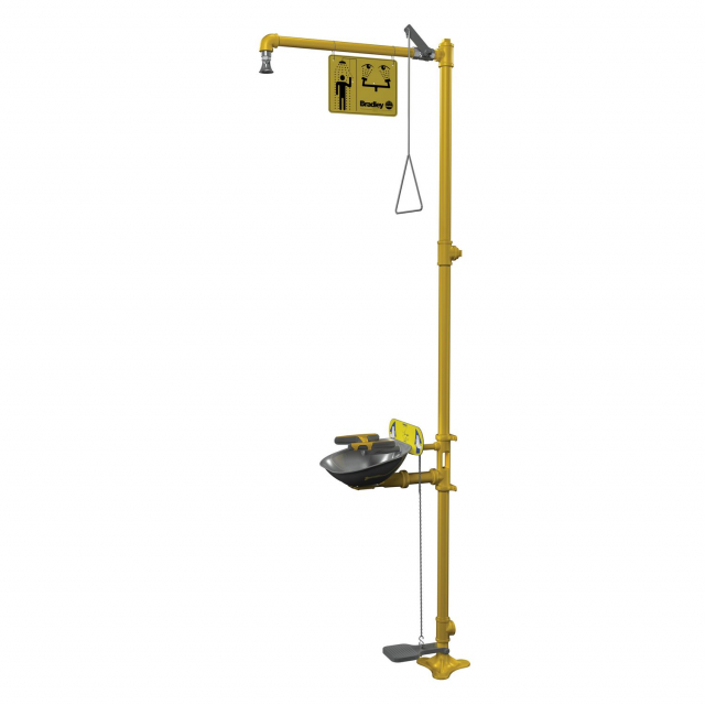 Bradley, S19314SPRZ, Halo Combination Drench Shower and Eye-Face Wash, Stainless Steel Bowl and Plastic Showerhead, Hand/Foot Operated, European and Australian