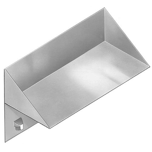 Backplate & Shelf: 14 gauge stainless steel with exposed surfaces in architectural satin finish. All seams are welded and ground smooth. Shelf interior is glass blasted to a uniform finish.