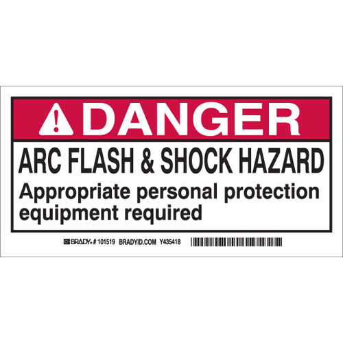 Brady, 101520, 2" x 4" Label with Legend: "DANGER: Arc Flash & Shock Hazard Appropriate Personal Protection Equipment Required"