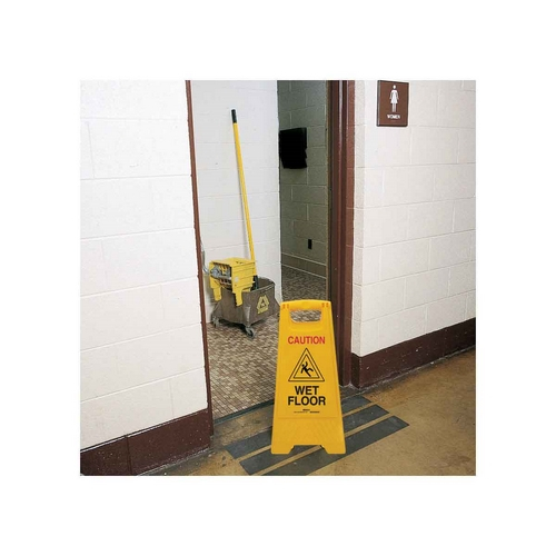 Brady, 104809, 24" x 12" Heavy Duty Floor Stand "Caution Wet Floor", Polypropylene, Black/Red on Yellow