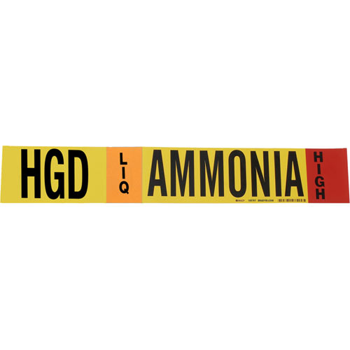 Brady, 105767, 4" Pipe Marker "HGD Liq Ammonia High", Polyester, Black/Orange/Red on Yellow