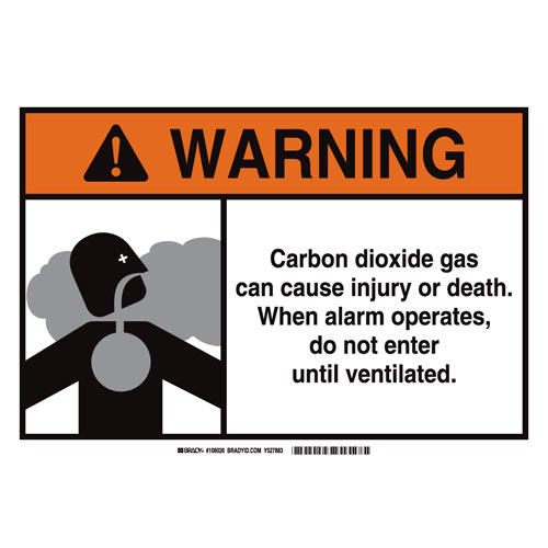 Brady, 106026, 10" x 14" Sign "Warning Carbon Dioxide Gas Can Cause Injury or Death", Polystyrene