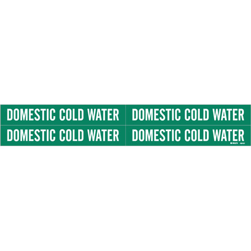 Brady, 106101, 1.125" x 7" Pipe Marker "Domestic Cold Water", Polyester, White on Green