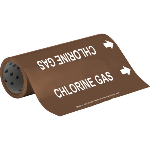 Brady, 108799, 12" Pipe Marker "Chlorine Gas", Vinyl, White on Brown