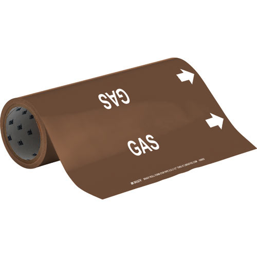 Save 5% each on Brady 109003 12" Pipe Marker "Gas", Vinyl, White on Brown when you purchase 10 or more