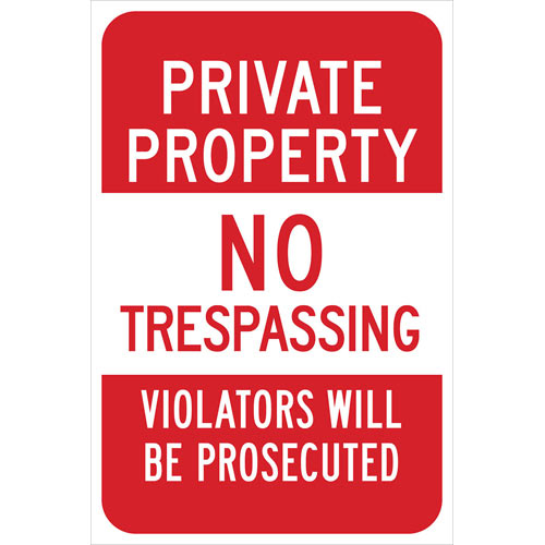 Brady, 115624, 18" x 12" B555 Private Property No Trespassing Violators Will Be... Sign