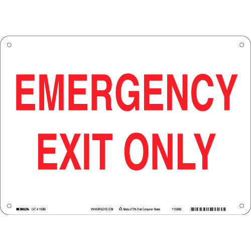 Brady, 116089, 10" x 14" Polypropylene Red on White Emergency Exit Only Sign