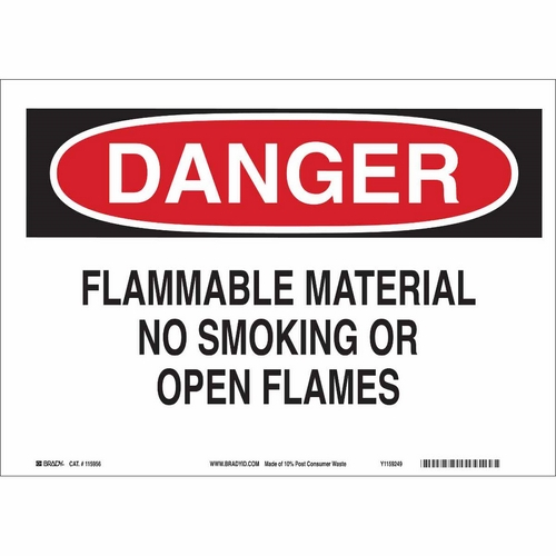 Brady, 116121, 7" x 10" B-563 Danger Flammable Material No Smoking Or Open Flames Sign