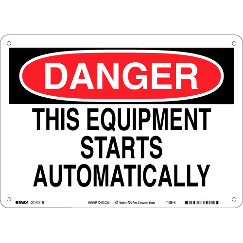 Brady 116153 This Equipment Starts Automatically Sign