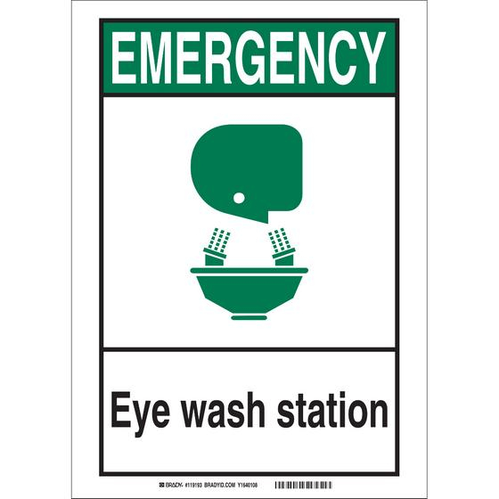 Brady, 119194, 7" x 5" Polystyrene Emergency Eye Wash Station Sign, Black/Green/White