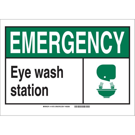 Brady, 120662, 7" x 10" Vinyl Emergency Eye Wash Station Sign, Black/Green/White