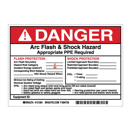 Save 5% each on Brady 121094 Flash Protection Arc Flash Category 4 Label when you purchase 25 or more