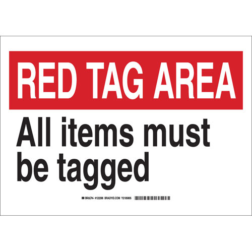 Brady, 122296, 10" x 14" B-302 Red Tag Area All Items Must Be Tagged Sign
