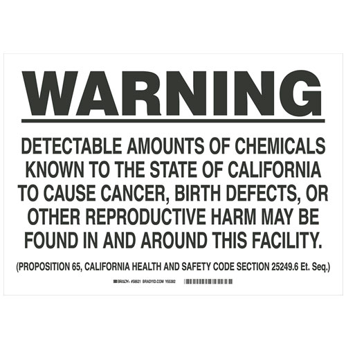Brady, 122343, 10" x 14" B555 Warning Detectable Amounts Of Chemicals... Sign