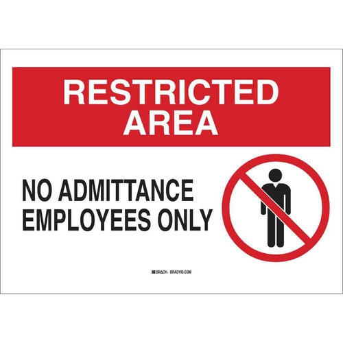 Brady, 122431, 7" x 10" Alum. Restricted Area No Admittance Employees Only Sign