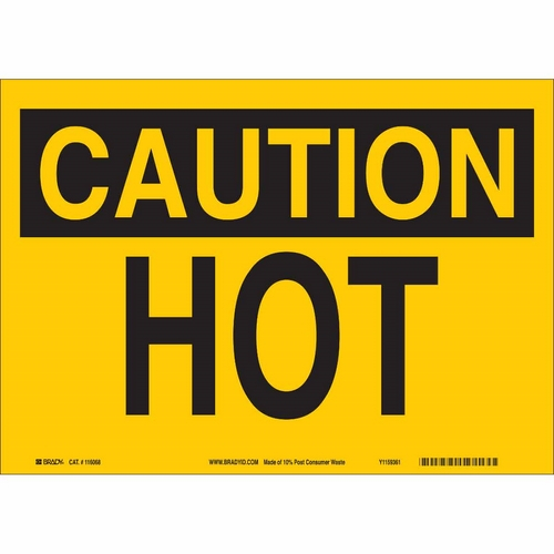 Brady 122539 7" x 10" Polystyrene Caution Hot Sign, Black on Yellow