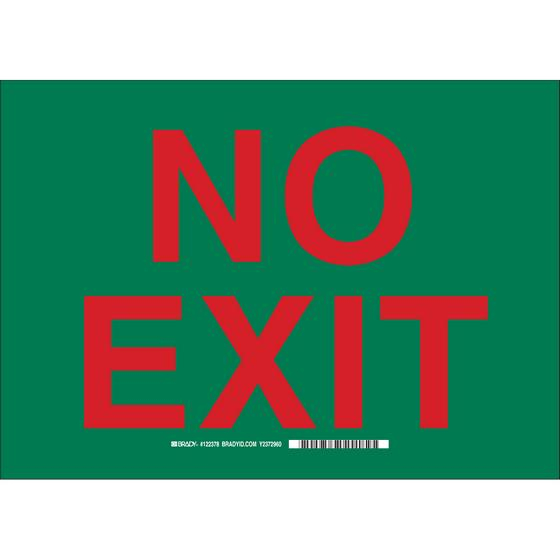 Brady 122556 7" x 10" Polystyrene No Exit Sign, Red on Green