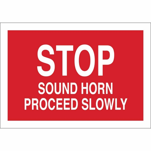 Brady, 122691, 7" x 10" Polyester Stop Sound Horn Proceed Slowly Sign, White on Red