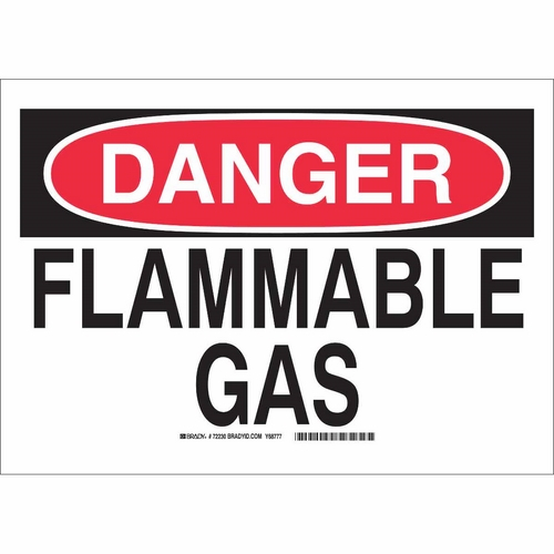 Brady, 122815, 7" x 10" Fiberglass Danger Flammable Gas Sign, Black/Red on White