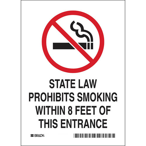 Brady, 123048, 7" x 5" B-946 State Law Prohibits Smoking w/in 8 Feet... Sign
