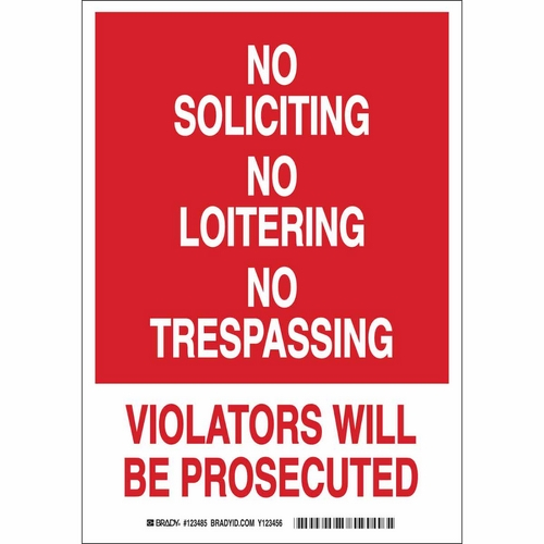 Brady, 123486, 14"x10" B555 Noing No Loitering No Trespassing Violators Will Be... Sign