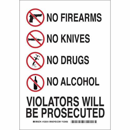Save 5% each on Brady 123508 10" x 7" B555 No Firearms No Knives No Drugs... Sign when you purchase 25 or more