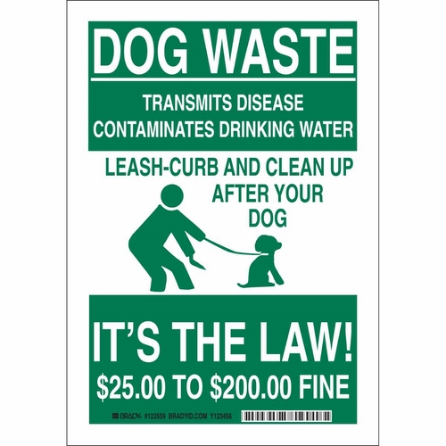 Brady, 123558, 10" x 7" B-401 Dog Waste Transmits Disease Contaminates... Sign