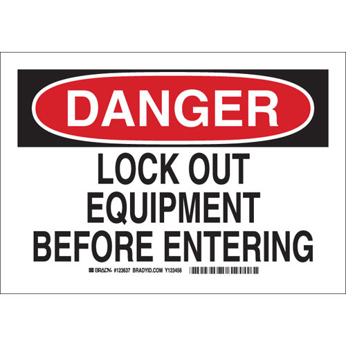 Brady, 123637, 7" x 10" Polyester Danger Lock Out Equipment Before Entering Sign