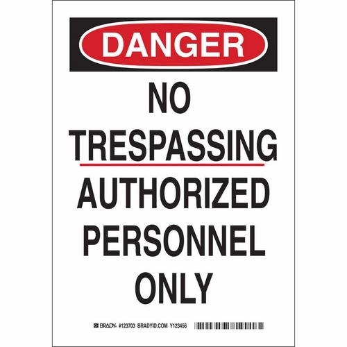 Brady, 123701, 10" x 7" Aluminum Danger No Trespassing Authorized Personnel Only Sign