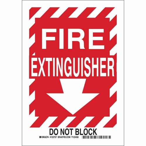 Save 5% each on Brady 123758 14" x 10" Aluminum Fire Extinguisher Do Not Block Sign when you purchase 25 or more