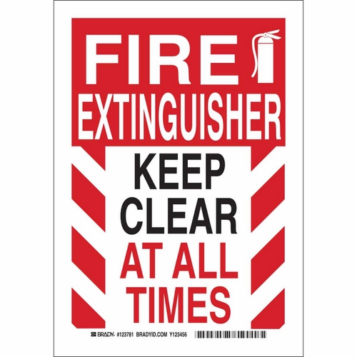 Brady, 123780, 10" x 7" Polystyrene Fire Extinguisher Keep Clear At All Times Sign