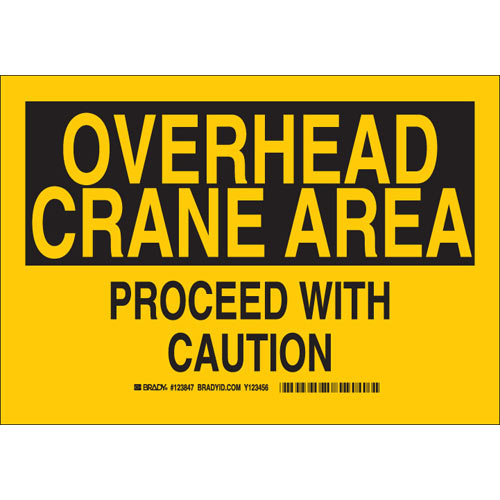 Brady, 123847, 7" x 10" Polyester Overhead Crane Area Proceed with Caution Sign