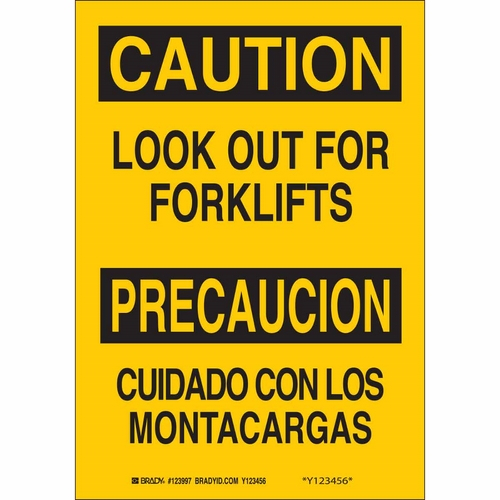 Brady, 123998, 14" x 10" Aluminum Bilingual Caution Look Out For Forklifts Sign
