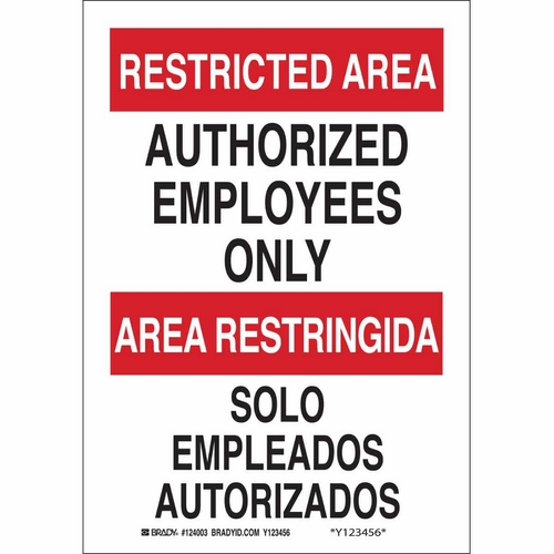 Brady, 124001, 10" x 7" Alum. Bilingual Restricted Area Authorized Employees Only Sign