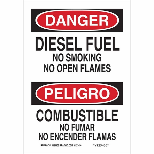 Brady, 124018, 14" x 10" B-302 Danger Diesel Fuel No Smoking No Open Flames Sign