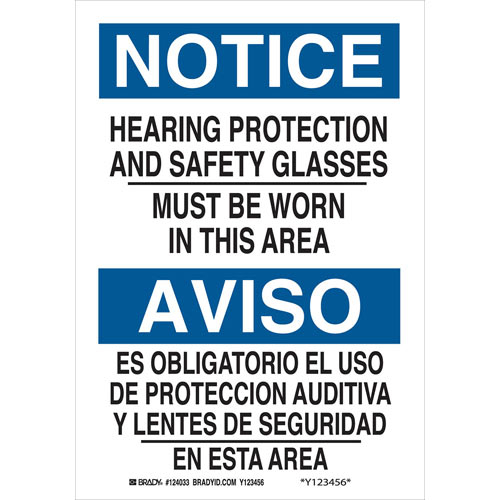 Brady, 124033, 10" x 7" B-302 Bilingual Notice Protection... ... Must Be Worn... Sign