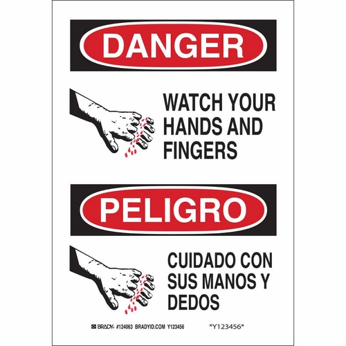 Brady 124066 Danger Watch Your Hands & Fingers Sign