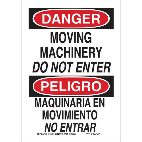 Brady, 124075, 10" x 7" Polyester Bilingual Danger Moving Machinery Do Not Enter Sign